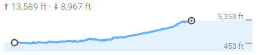 Over this epic leg we’ve climbed over 13,000 feet – about half of Mount Everest – but it’s been barely noticeable as the country gently rises towards the Rocky Mountains. In real life I would have spread this climbing over a month – climbing about 540ft a day. But the next leg is perhaps the hardest of the whole journey, taking us over two mountain ranges and through deserts before we descend back to the West Coast.